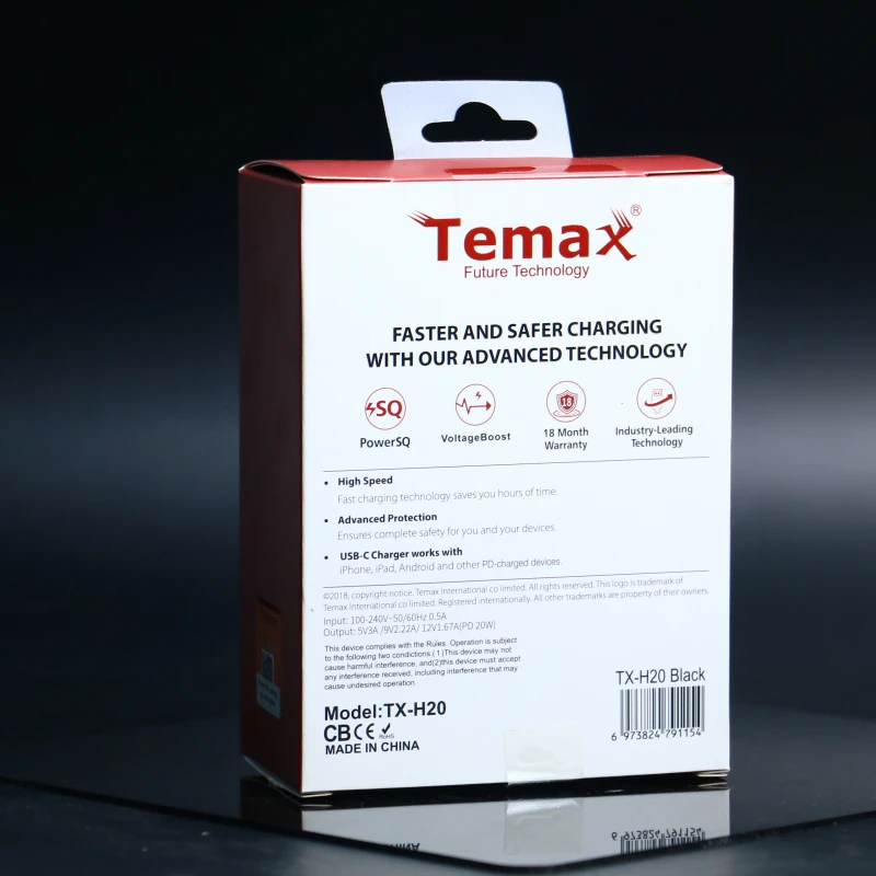 الإخراج: ٥ فولت ٣ أمبير/٩ فولت ٢.٢٢ أمبير/١٢ فولت ١.٦٧ أمبير (PD ٢٠ واط)