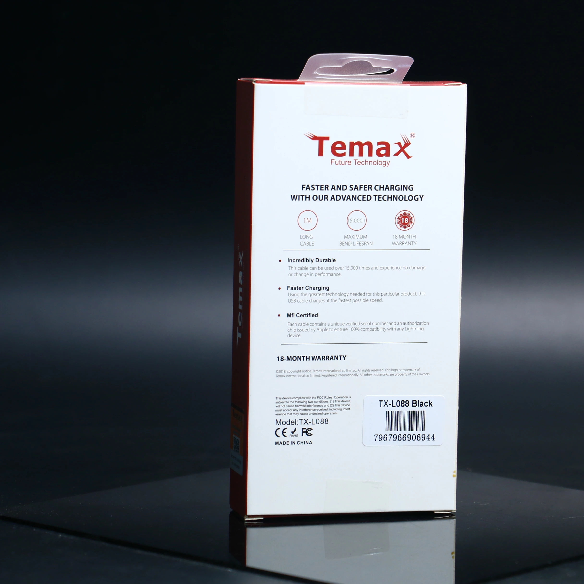 يحتوي كل كابل على رقم تسلسلي فريد وموثق وشريحة تفويض صادرة عن Apple لضمان توافقه التام مع أي جهاز Lightning