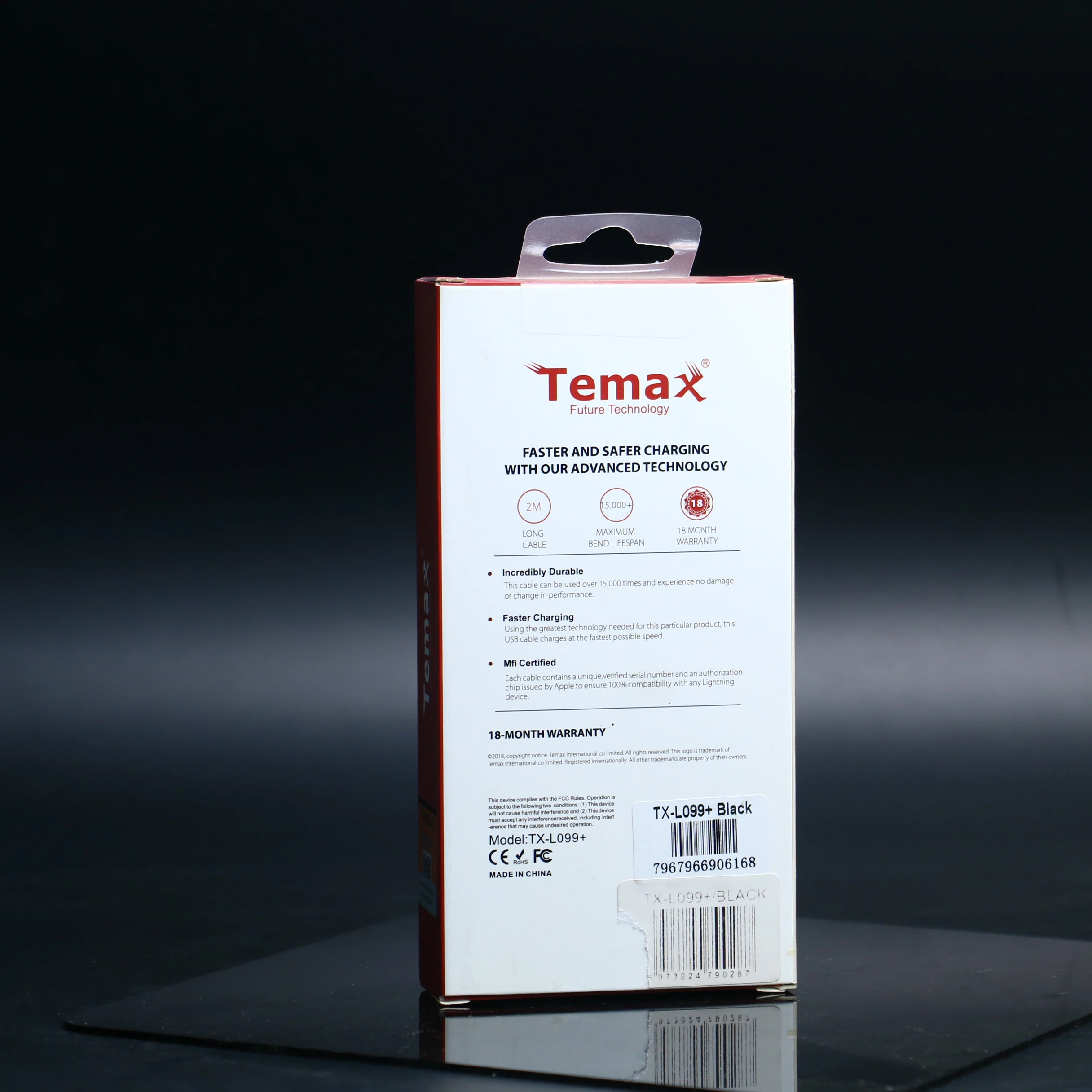 يحتوي كل كابل على رقم تسلسلي فريد وموثق وشريحة تفويض صادرة عن Apple لضمان التوافق التام مع أي جهاز Lightning.